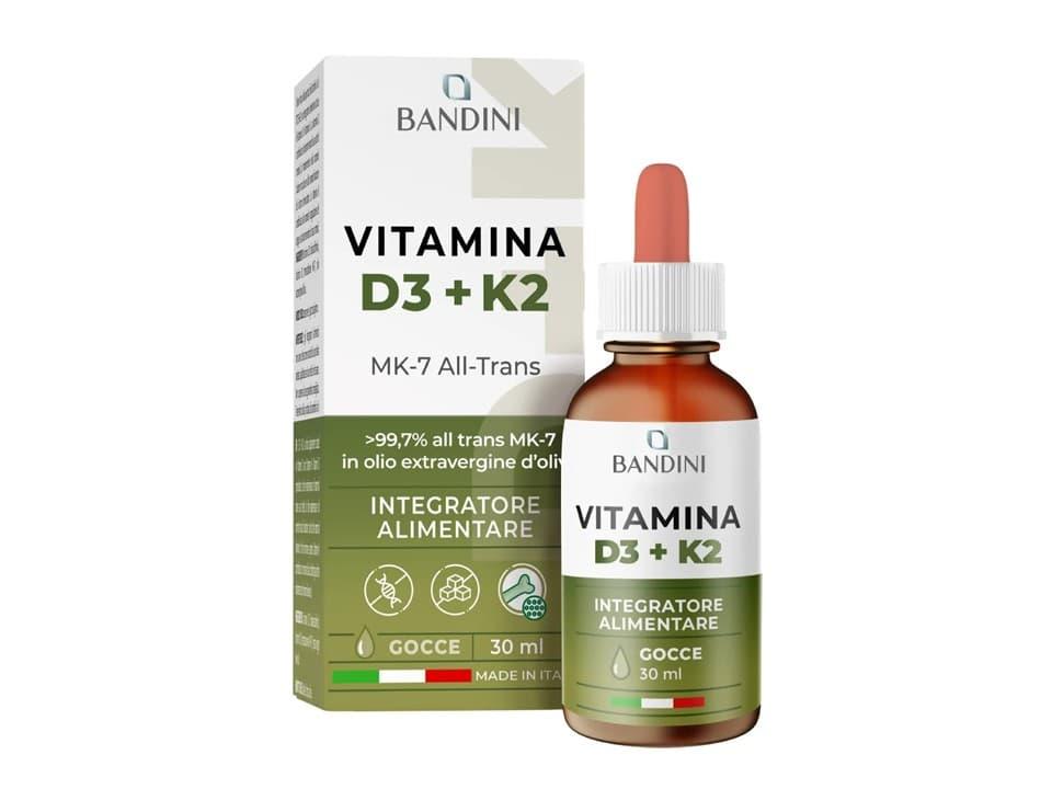 Ingredienti: Vitamina D3 (colecalciferolo), vitamina K2 (menachinone MK-7) olio extra vergine di oliva.